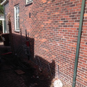 Liften van de funderingen d.m.v. van injectie van expansie harsen en verstevigen van de funderingen d.m.v. het inbrengen van n.12 druk micropalen voorzien van een dispositief met instelbare voorspanning LIFT PILE.