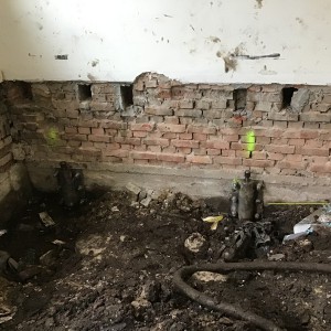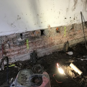 Verstevigen van de funderingen d.m.v. het inbrengen van 20 druk micropalen voorzien van een dispositief met instelbare voorspanning LIFT PILE met stalen ankerplaten.